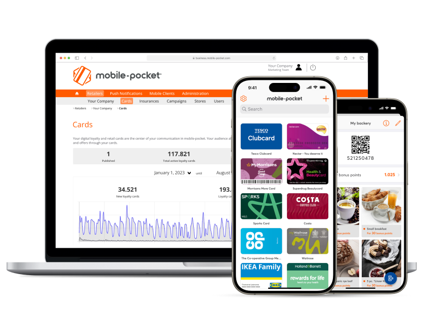 Whether you’re a retailer, brand, agency, bank, insurance company, or SME: if you’re looking for a solution that makes digital customer loyalty simpler, more efficient, and measurably more successful, mobile-pocket is the right choice. Our platform is flexible, ready to use immediately, and equipped with numerous features. Let’s find out together how mobile-pocket can make your customer loyalty more successful.