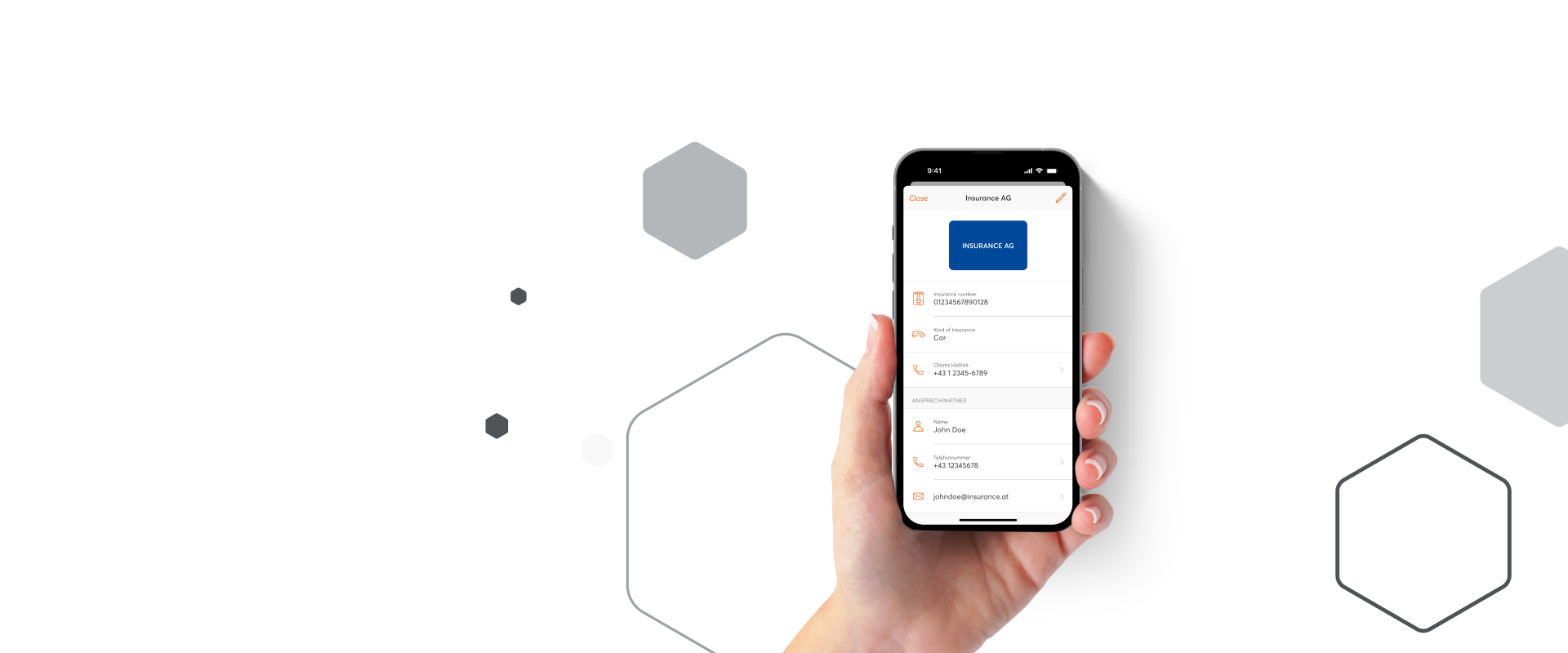 Customers always have their important insurance details with them – from policy numbers to contact information. In the event of a claim, a single click is enough to submit a digital report. This improves customer service, increases straight-through processing, and reduces manual workload. At the same time, you strengthen your digital channels and build a lasting, positive relationship with your customers.